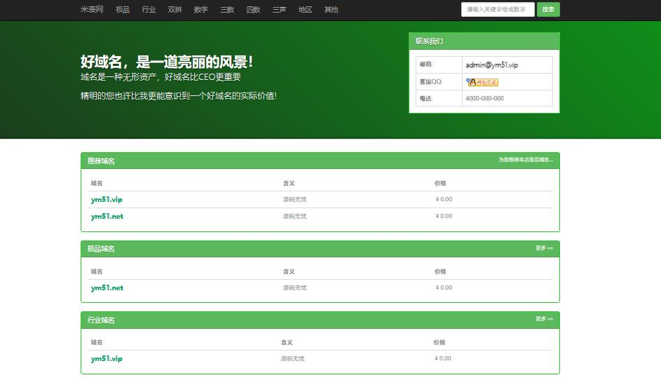 PHP域名销售管理系统网站源码+自适应电脑+手机端 源码介绍: 功能使用简单,不复杂,非常适合个人米表使用,带广告栏,安装简单,内附安装教程。...