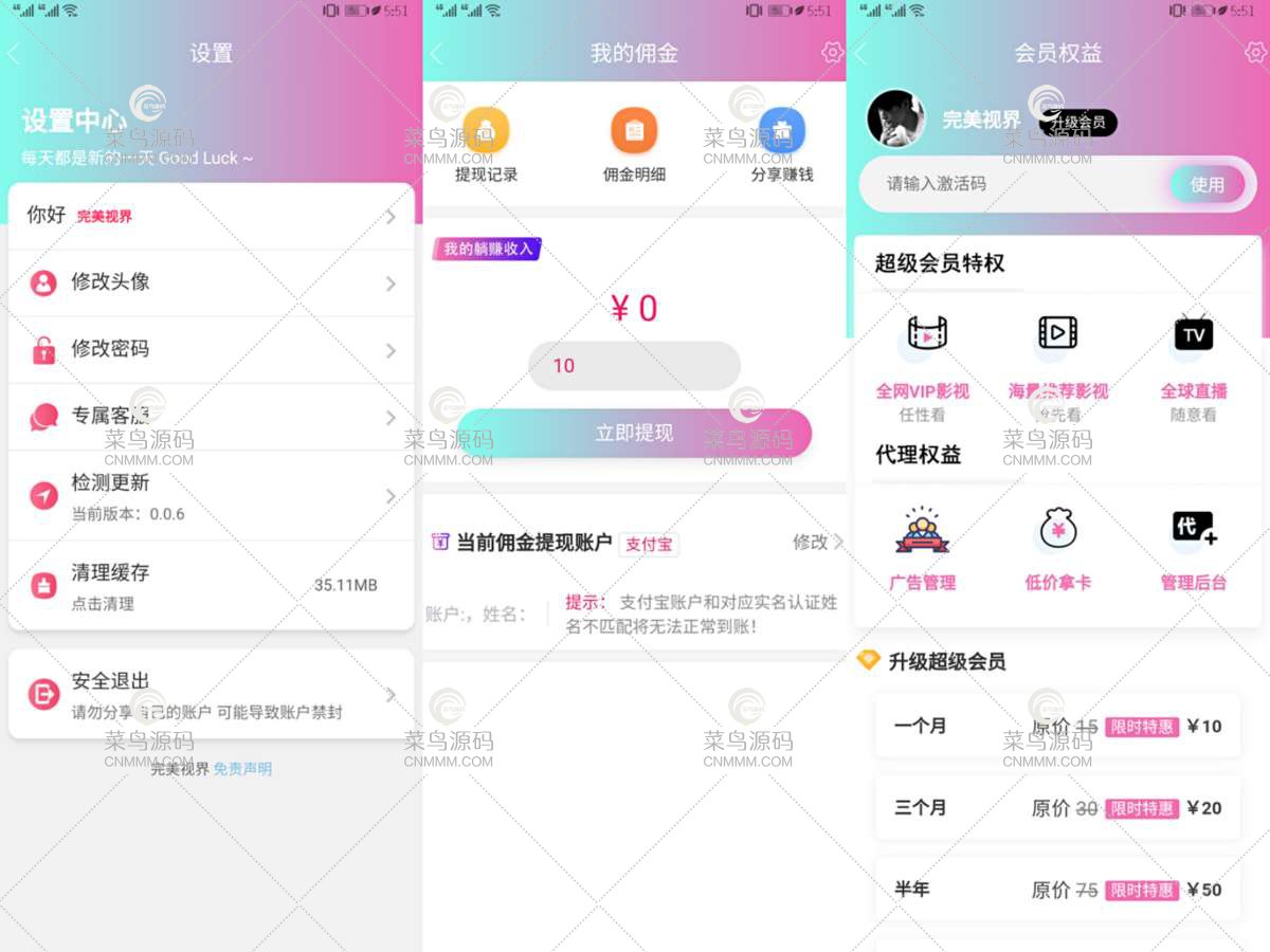 更新功能:代理独立广告系统、在线购卡充值时间、积分签到、卡密分销、用户精准统计、用户钱包系统、微信登录、消息推送、APP首页弹窗UI美化、视频自动采集更新、商城系统、淘宝客功能、代理返佣。