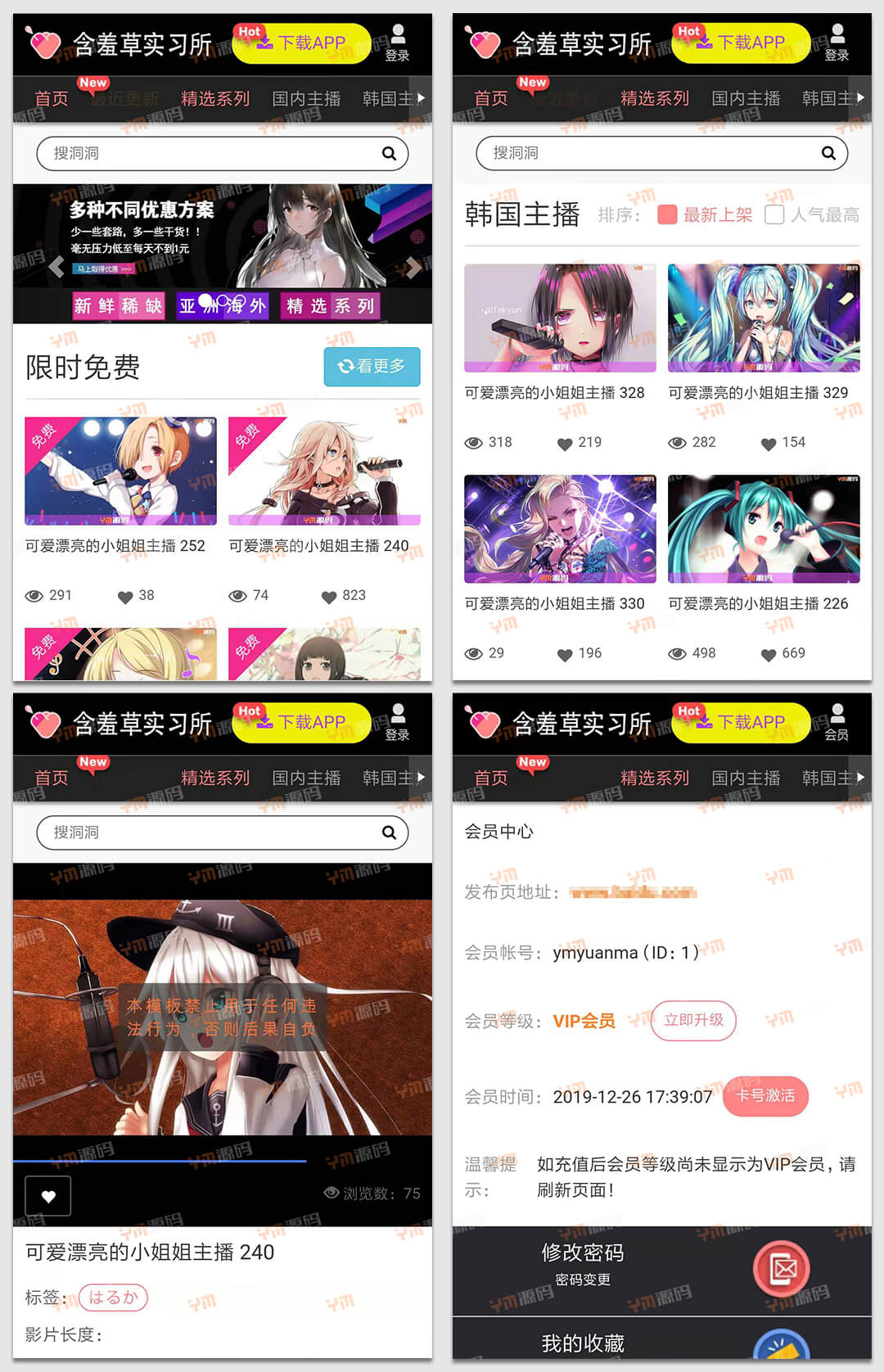 2020最新版YMYS003含羞草实习所二开苹果cms视频网站源码模板 可封装双端app