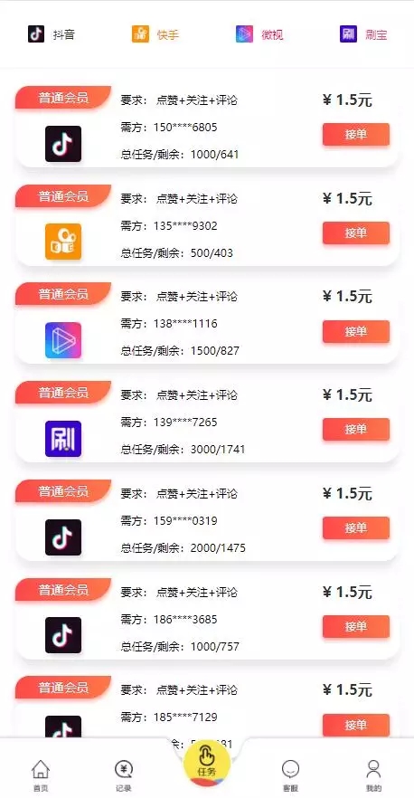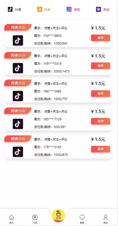 【全修复版本】抖音快手火山视频点赞1.8版平台源码/另一个版本的UI