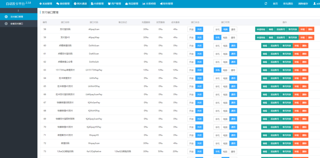 基于Thinkphp5内核开发真正企业级的自动发卡平台V2.38 集成后台系统常用功能(详细见亲测图)拥有多用户/多支付通道对接功能/全响应式界面