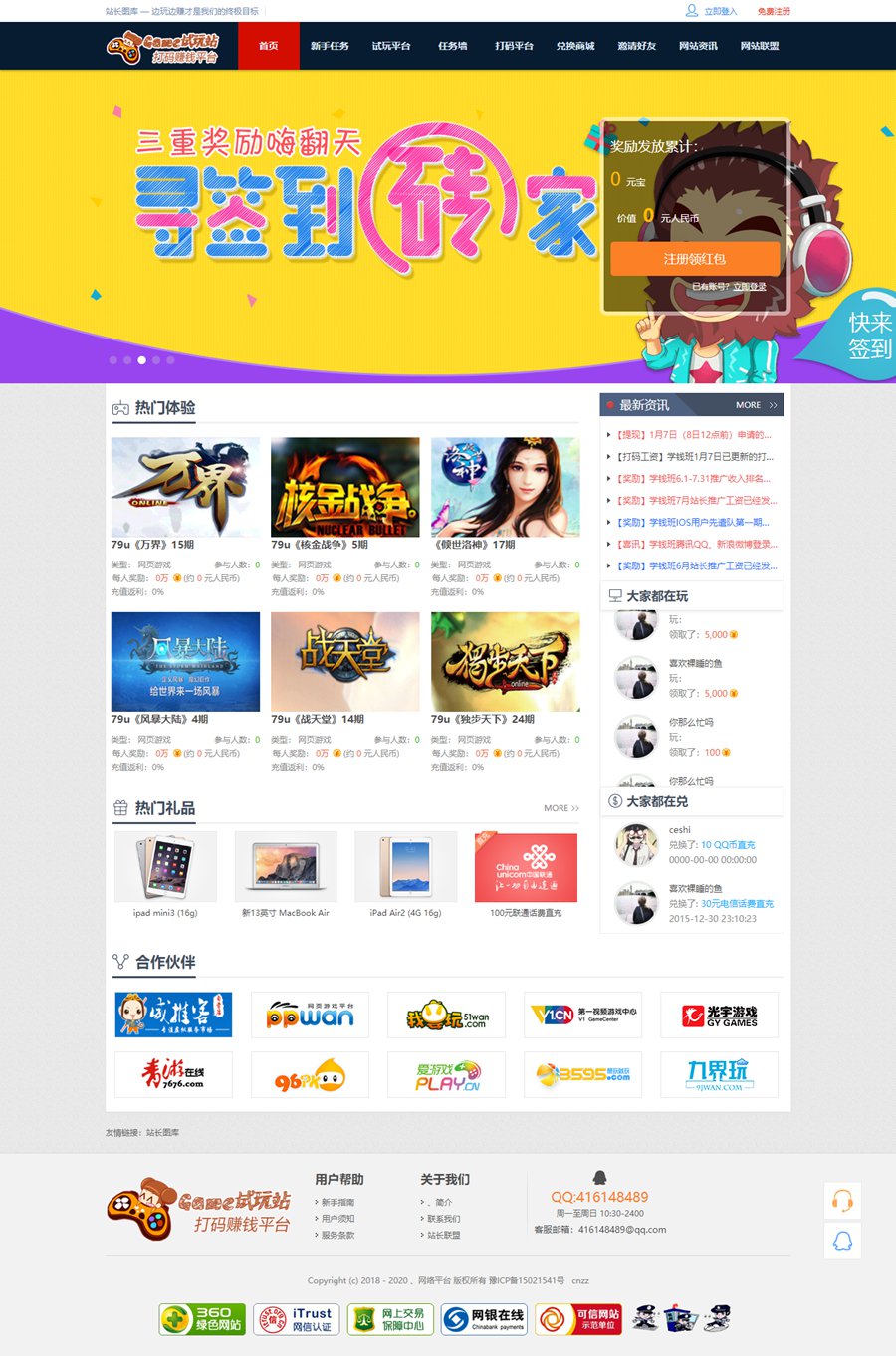 最新打码赚钱游戏试玩平台赚钱源码,打码赚钱平台+体验赚钱,YII内核,完整可运营,邀请返利新手任务积分商城对接广告联盟,这类型的试玩平台是比较赚钱的,因为游戏一直是一个暴力行业,所以催生了游戏试玩这一行业,可以邀请会员,实现层层返利,做任务赚钱,有兴趣的可以下载研究,里面带详细的对接教程及安装教程!