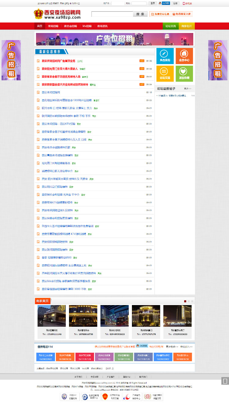 本程序适合做各类娱乐信息发布平台包括KTV,夜场,兼职信息,酒吧信息,当然您也可以做别的行业的信息,栏目全部自定义可以改成任何行业的