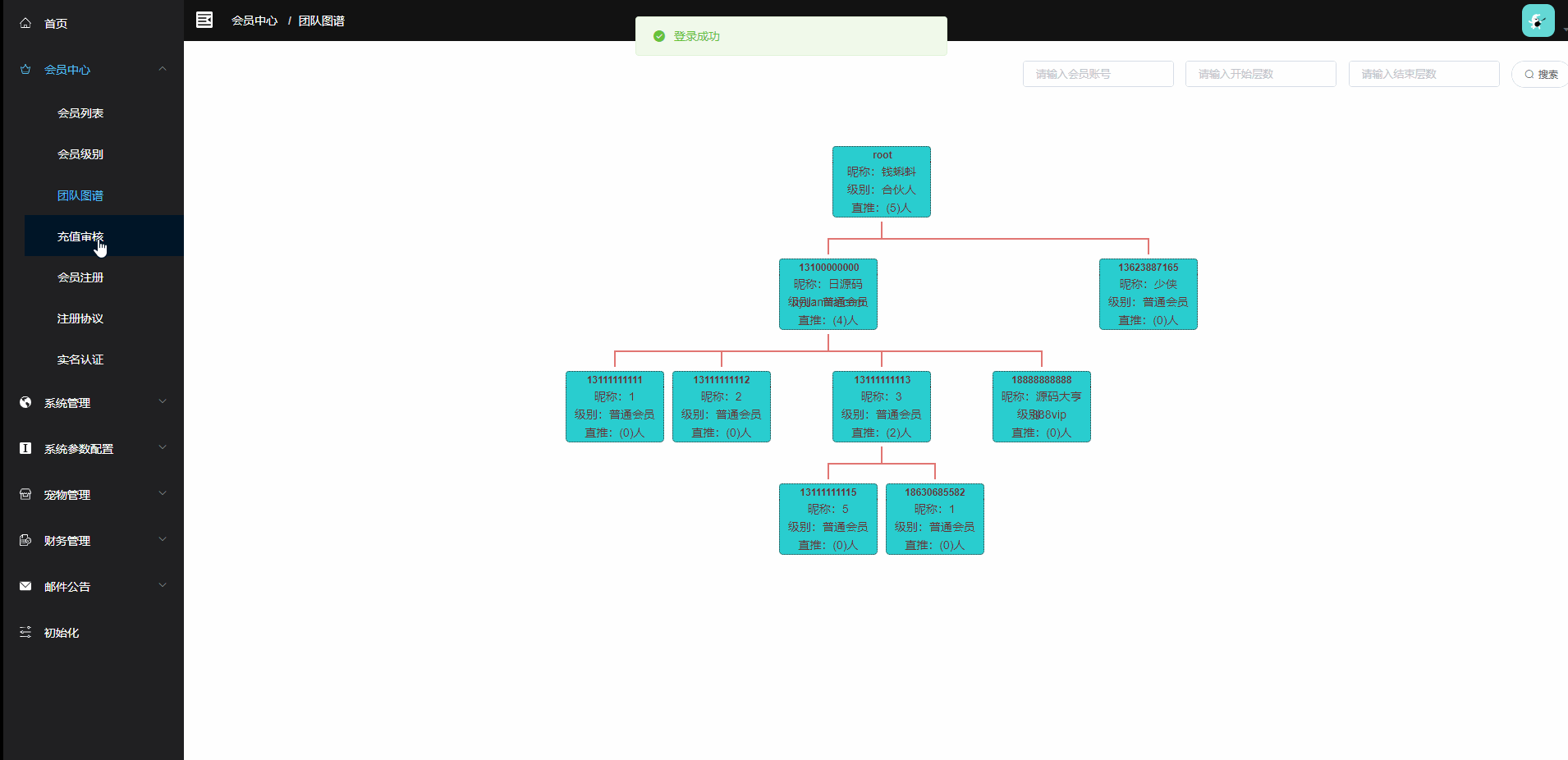 后台可对会员进行币种冲扣,可进行赠送赠送英雄。管理账户可设置不同角色权限。支持自定义会员级别,会员条件升级。支持推广奖、团队奖会员等级奖励比例。可单独设置单个英雄。详细财务管理,交易明显一目了然。