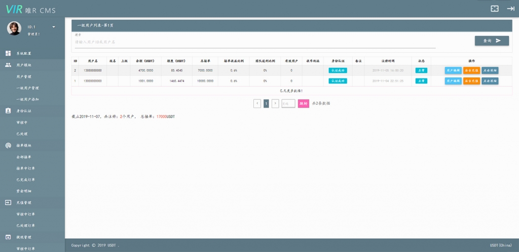 框架和后端都非常不错。用来二开非常合适,程序没用加密没用授权。USDT虚拟货币 接单返利 账户充值进行接单,进行返利兑换。需要那感觉拿去吧
