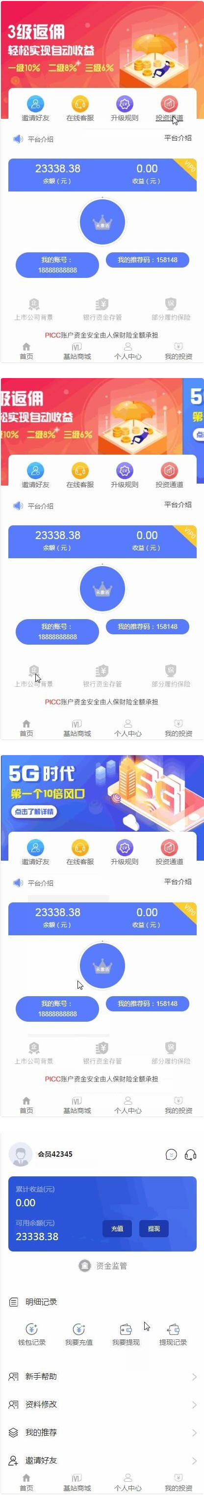 本平台将用户的钱投资5G市场,将收益的一大部分分给用户,剩余的作为平台的运维费用,技术成本等。此项目为共赢模式,以长久发展为旨,客户需求为大,2019并肩前行,一路有你!