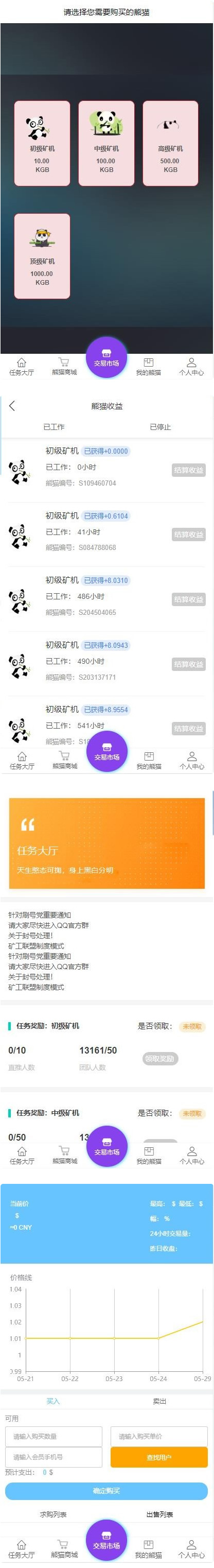 新版区块链/资金盘/虚拟币/挖矿/带曲线图/熊猫矿机/金融投资理财赚钱源码