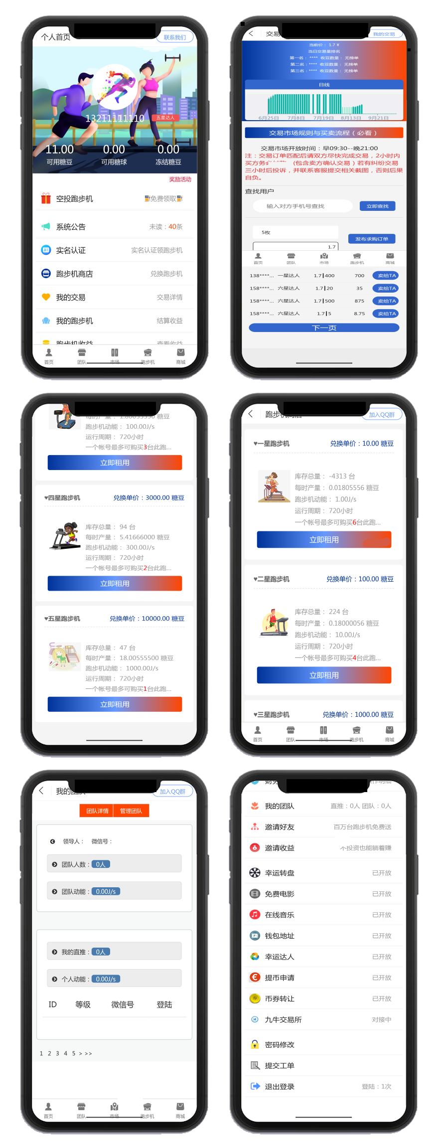 2020全新界面易航跑步机源码区块链矿机系统矿池挖矿客户运营可二开+带购物商城