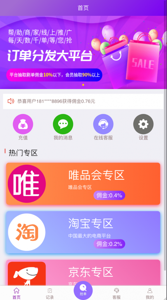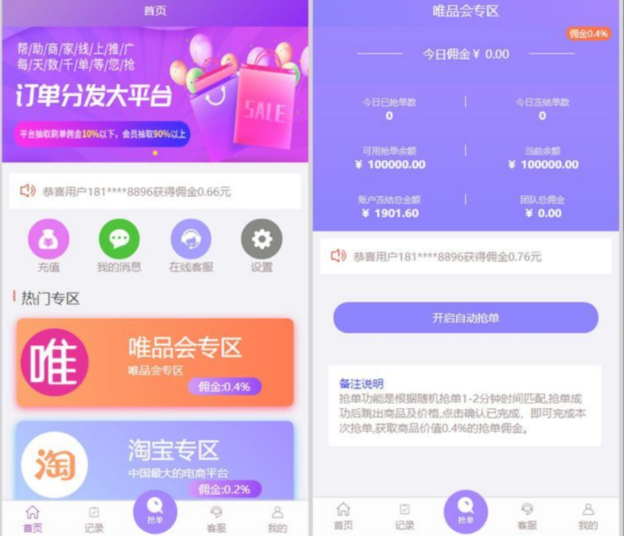 【免授权新增利息宝】京东淘宝唯品会自动抢单系统源码利息宝抢单接单返利区块链源码