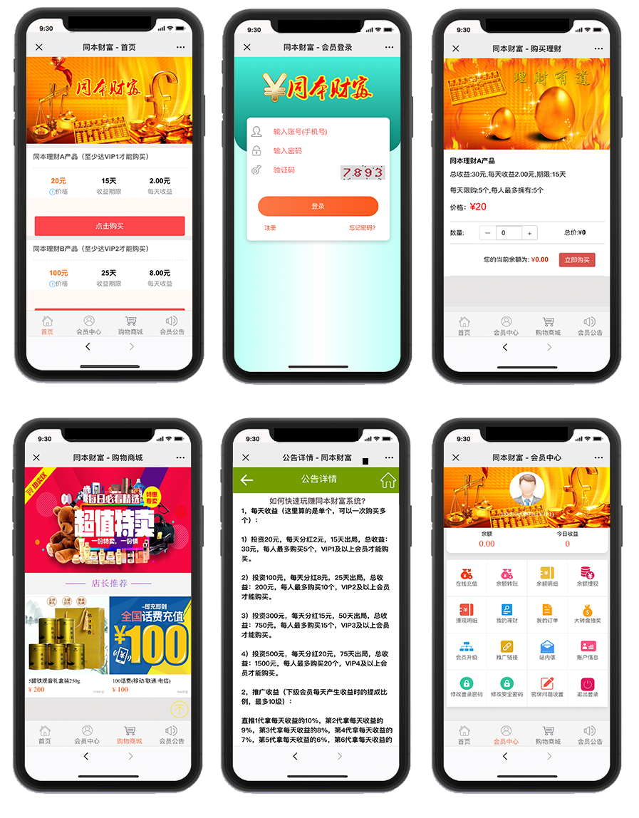 同本财富防黑版,防注入防篡改,分红源码/理财系统/每日返利/资金盘/投资金融带商城,采用人工充值方式,前台填写充值金额,选择支付宝或微信后跳出个人收款二维码,提交申请后,后台有提示音对应操作就可以了。采用人工转账提现方式,前台提交申请后,后台有提示音对应操作就可以了。