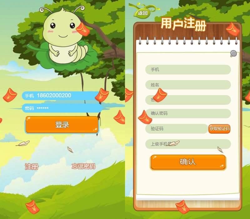 6.新增了金豆,为新用户开户时候,需要消耗除了蚕宝宝以外,还有金豆。后台可设定数额