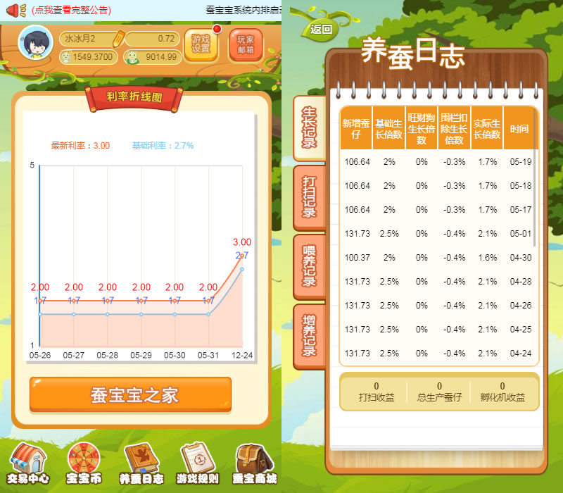 运营版蚕宝宝复利养殖理财游戏带金豆带宝宝币内置虚拟币系统农场牧场游戏源码330游戏