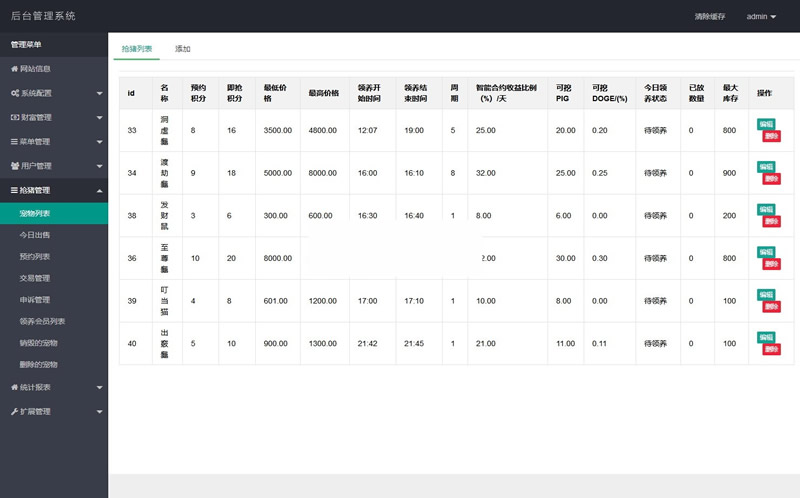 2.原则上每天交易时间分8个时段,采取强制挂卖和预约方式,即每个会员的宠物猪到期之后将被强制挂卖,挂卖的宠物猪将被市场其他会员领养。