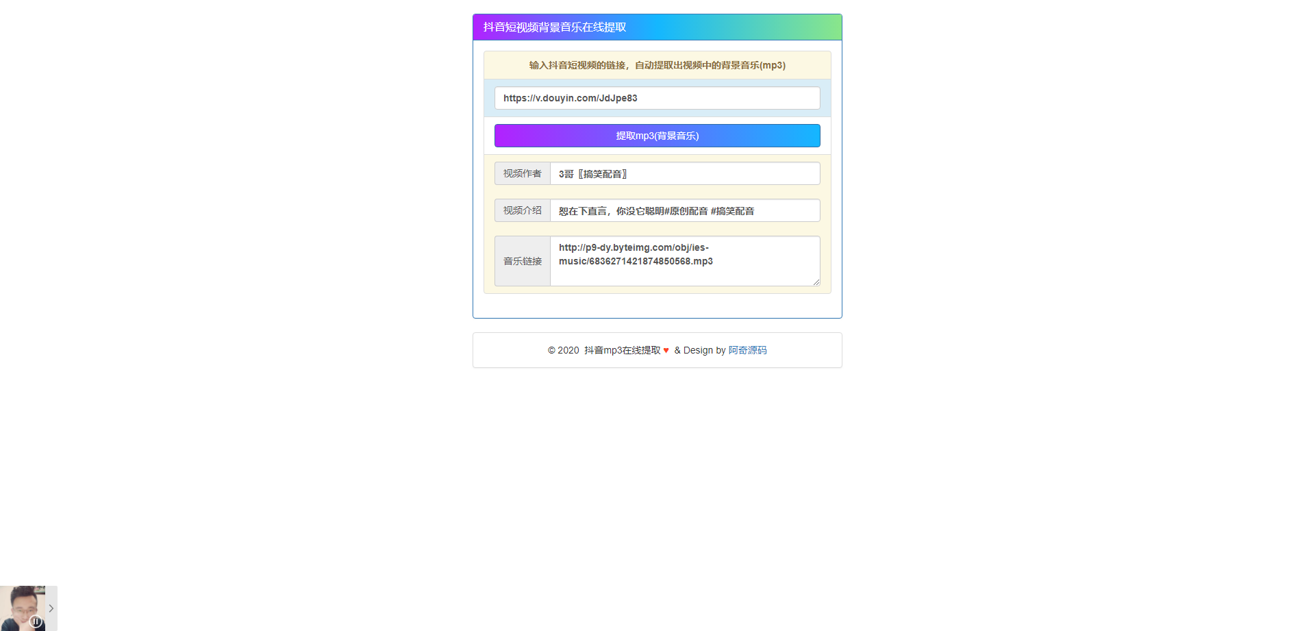 免安装直接使用在线抖音背景音乐提取PHP源码在线工具