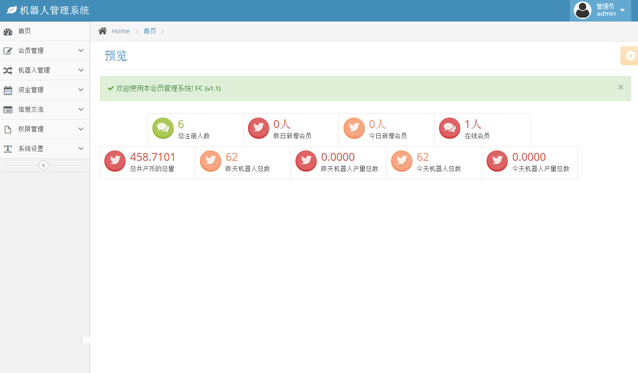 后台完善,可设置机器人每天佣金数,可对接短信,个人免签码支付
