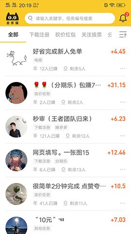 平均每天悬赏主会发出任务,手指点点赏金到手。