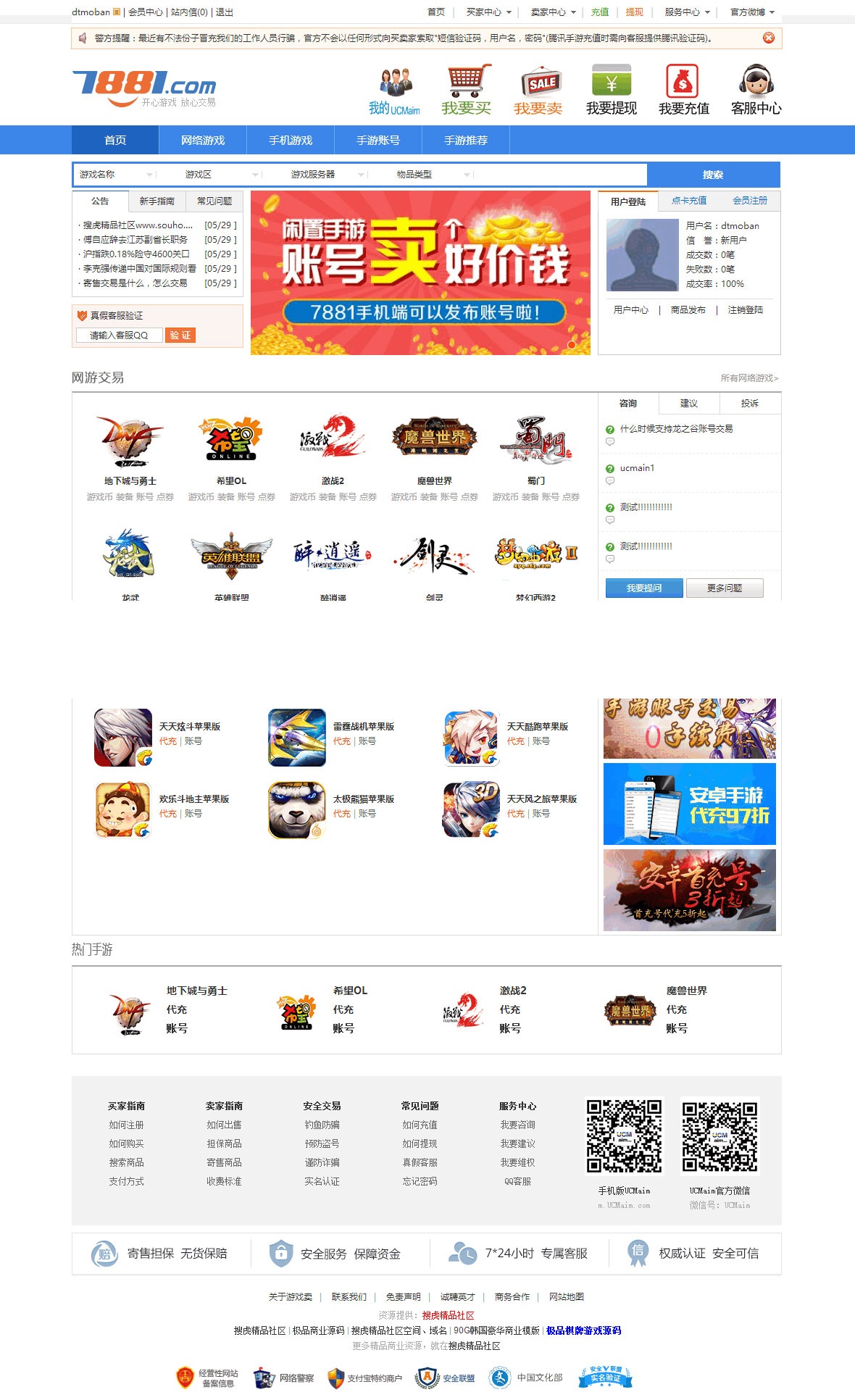【虚拟物品交易源码】7881游戏装备网源码下载/可做虚拟点卡和网站源码下载网,交易虚拟物品啊,点卡啊,游戏装备等等等等···UI看起来比较老了,不过都是php的,随便改了···