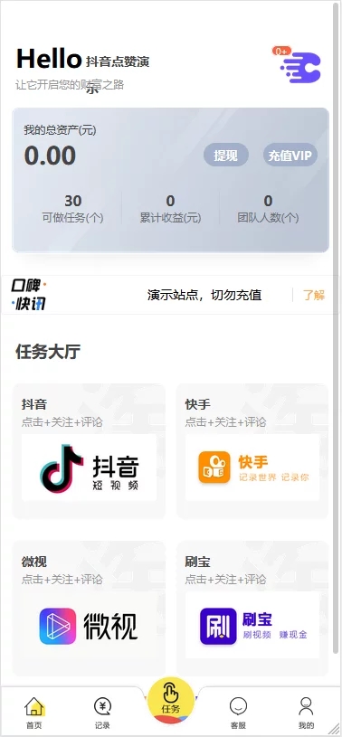 【修复运营级版】8月最新抖音快手短视频点赞任务平台完美全修复运营版源码对接免签支付接口
