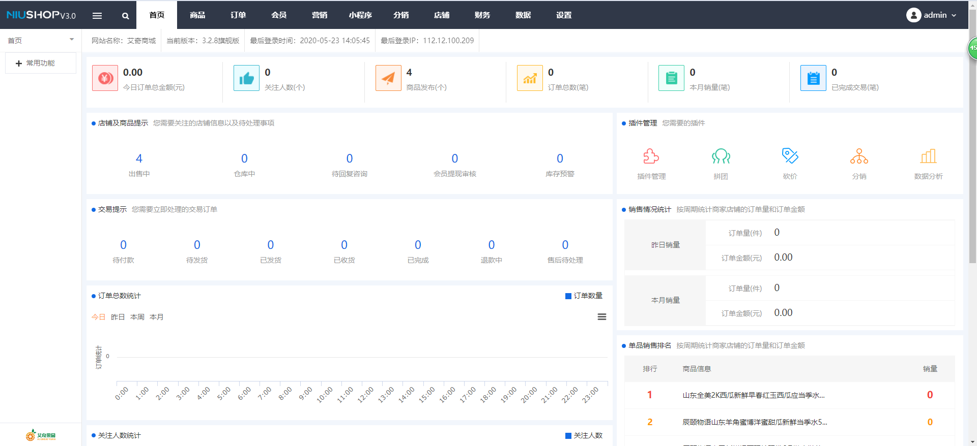3.0功能大幅膨胀,标准版没有的虚拟商品旗舰版上有,企业版没有的分销他也有,分销版没有的七七八八他也有,商品,订单,会员,营销,游戏,奖励,店铺,砍价,拼团,配送,积分兑换,预售,消息推送,分销,数据,微信,插件开发,客服,第三方对接。