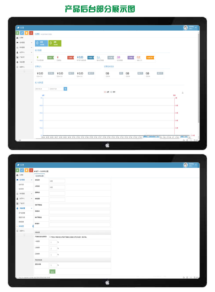 首页任务接单,主要分为抖音和快手任务关注点赞,用户可以领取符合要求的任务,复制任务打开app关注和点赞,截图提交,后台审核通过后即可领取佣金,根据不同的等级每天领取的任务个数和单价都不一样,后台设置,还可以通过海报推广好友,获取推广的返佣,同时还可以领取推广下线的任务返利。