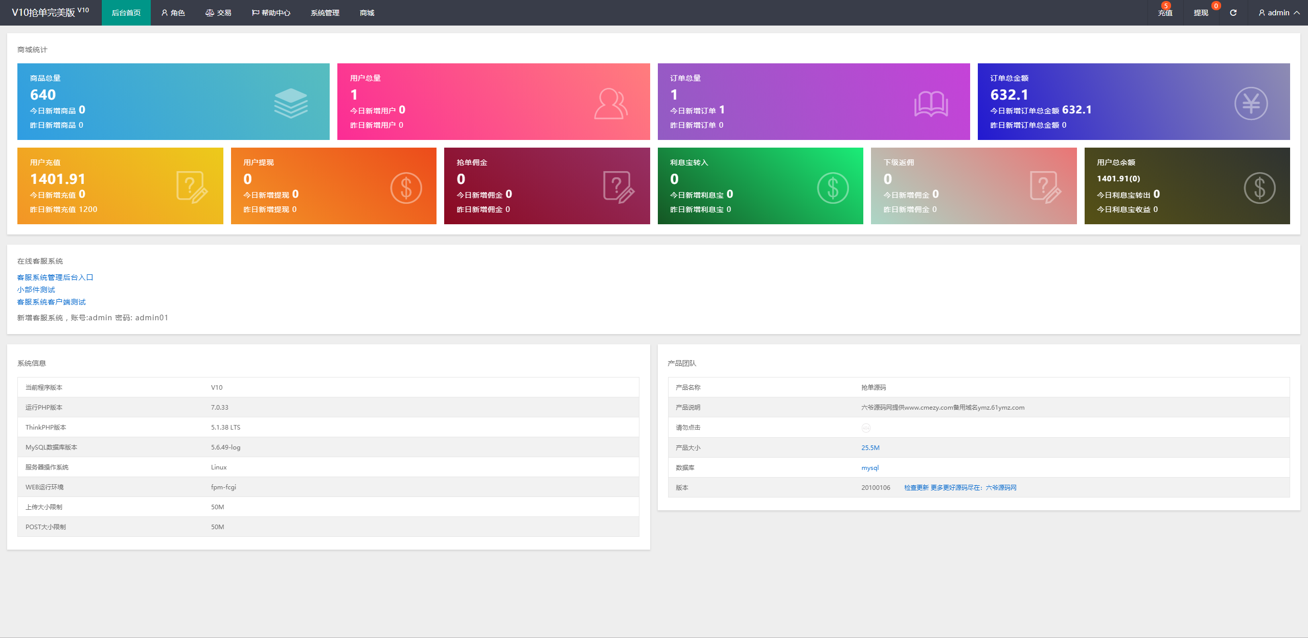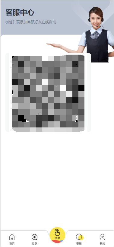 重新整理了下,推广抢单都已正常。之前的版本客服接的是忘了哪里的在线客服,难用还收费,索性就直接改成了二维码,点击客服直接显示客服二维码,方便的同时也有助于用户的积攒和管理。支付对接了派特第三方个人免签,微信支付宝双通道。可直接接单运营了。
