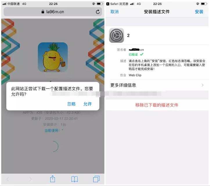 工作原理:直接调用苹果自带的Safari浏览器打开客户的H5网址的、所以也不会存在客户目标网站域名在微信或QQ打不开的问题以及不会掉签问题。