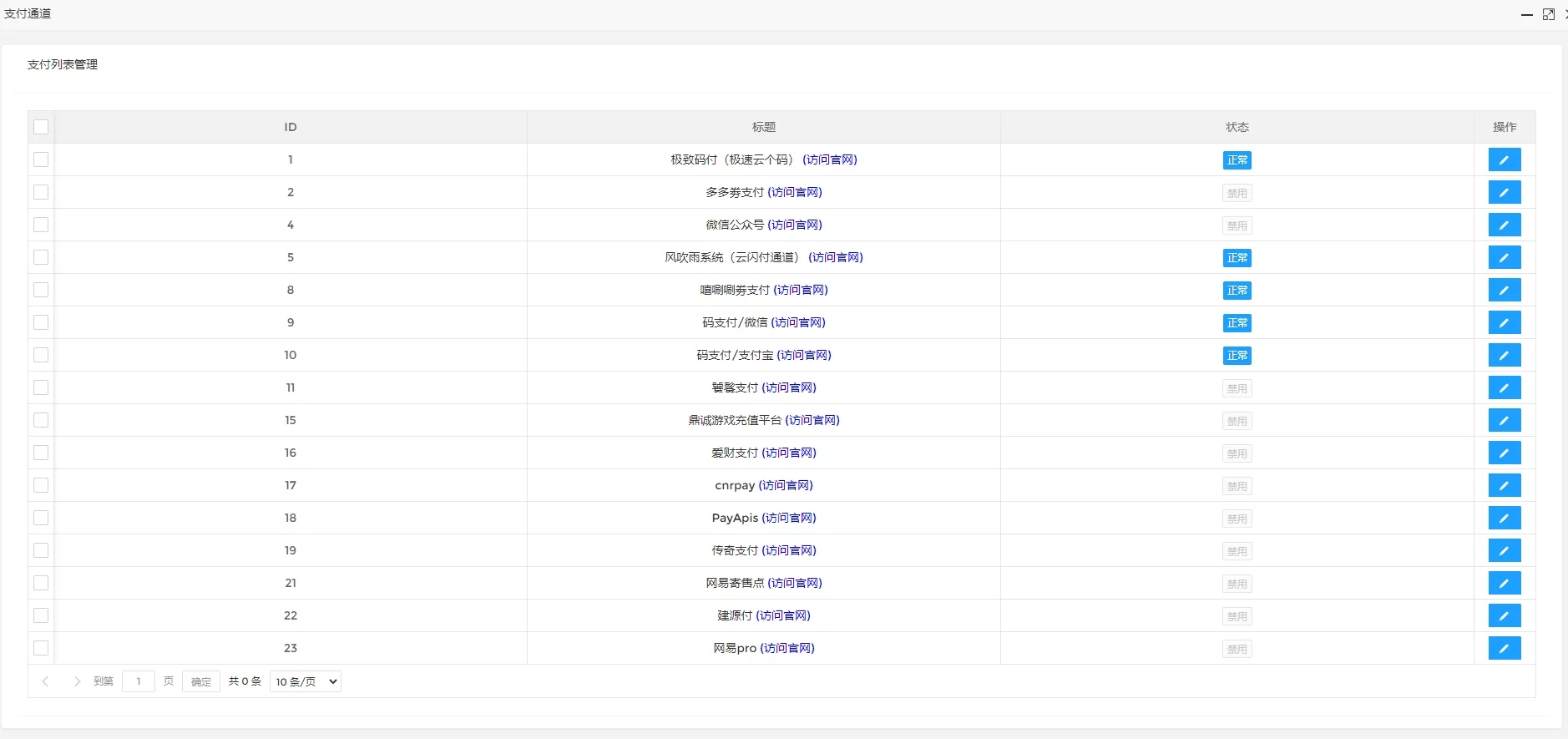 6、系统自带市面上常用的支付接口,一键配置,也可以增加新接口;
