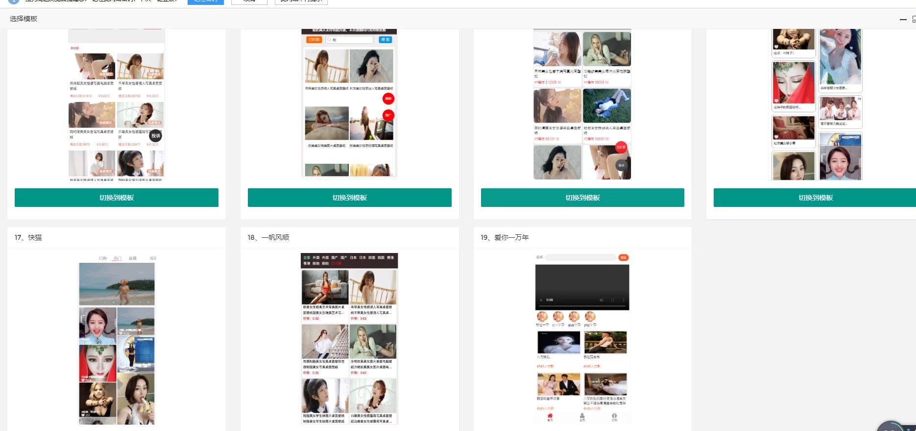 7、自带19套盒子模板,19套推广模板,一改以往死板的页面;