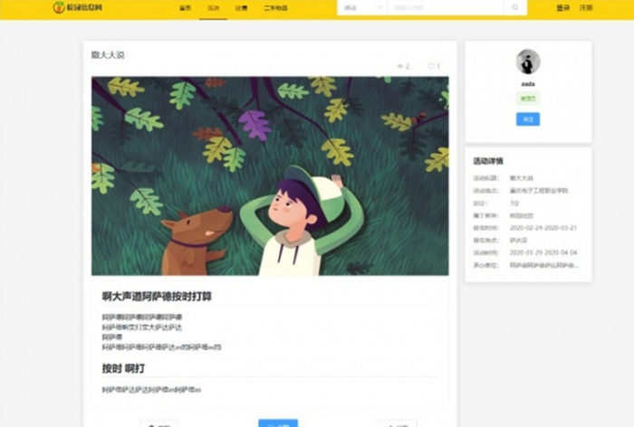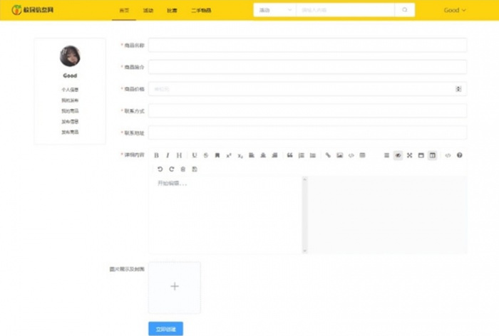 二手物品信息展示 信息搜索 发布活动和比赛以及商品