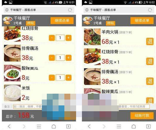 顾客使用自己的手机扫码二维码即可方便的点菜下单,全程无需服务员参与;