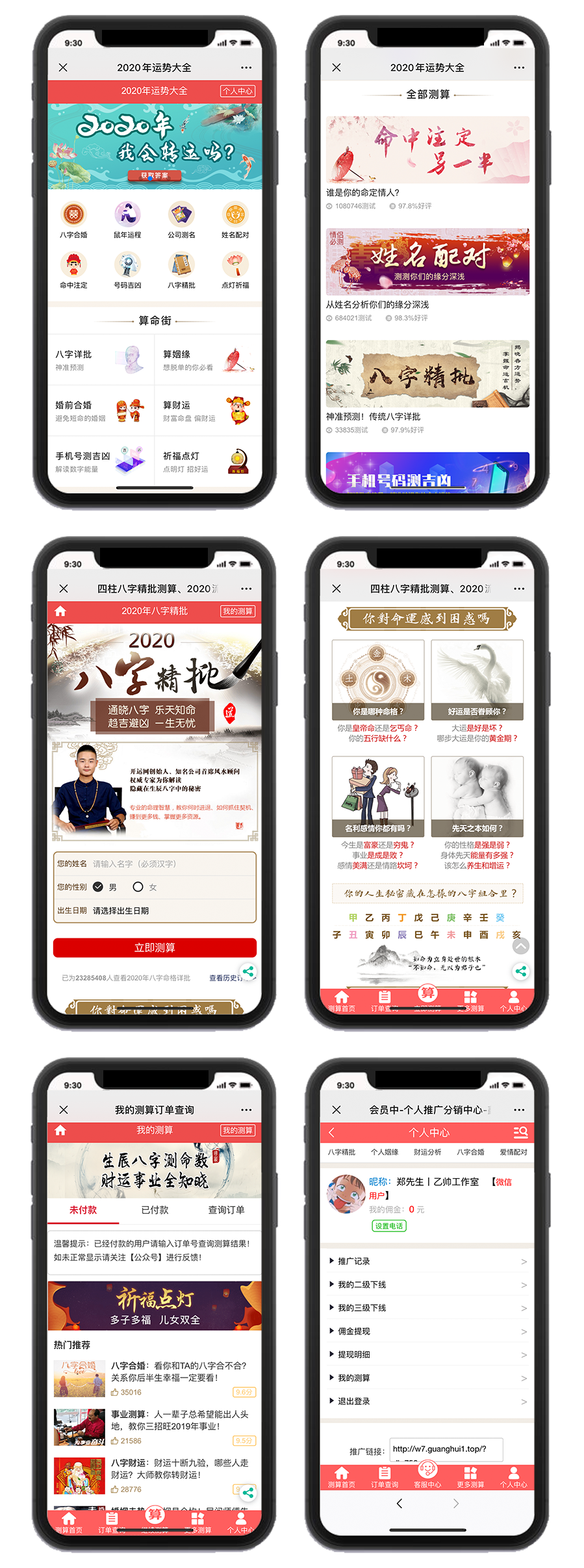 2020年PHP开运网运势测算网站源码,包含14个测算项目:1.2019爱情运 2.八字精批 3.2020运程 4.姓名配对 5.姓名详批 6.综合分析 7.姻缘分析 8.十年大运 9.月老姻缘 10.一生财运 11.紫微斗数 12八字合婚 13.号码分析 14.宝宝起名
