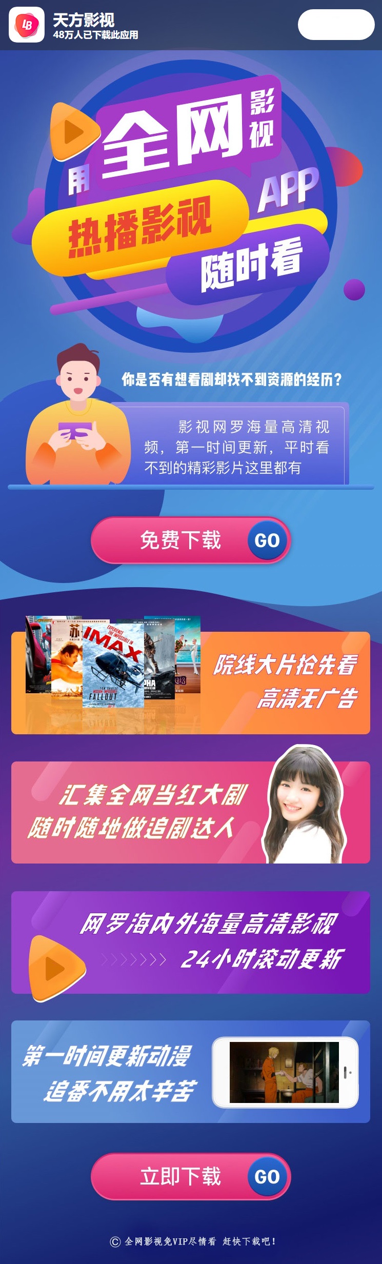 【纯HTML网页】影视视频等类安卓+苹果手机APP应用下载落地页网页源码