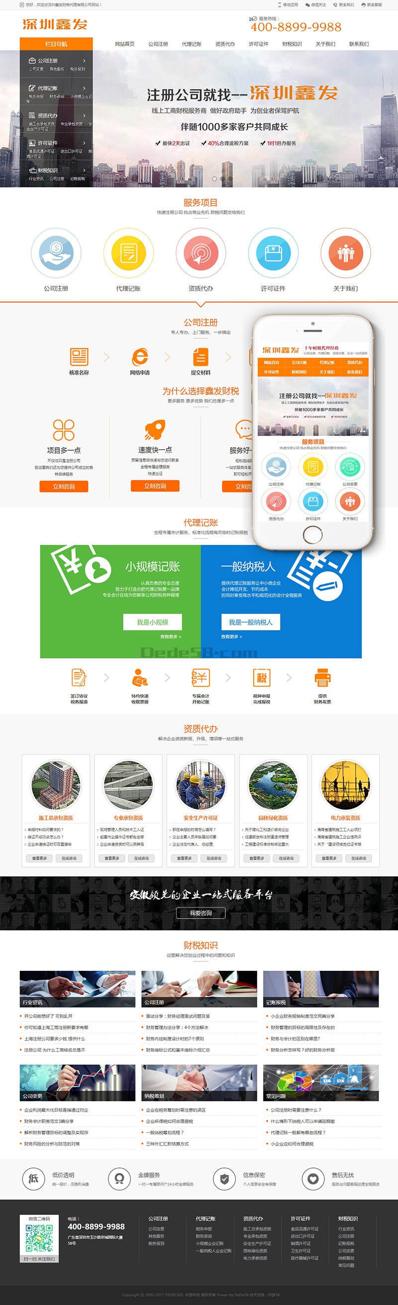 织梦最新内核开发的模板,该模板属于营销型企业通用类、财税代理、公司注册、代理记账、资质办理、税务申报类企业都可使用,
