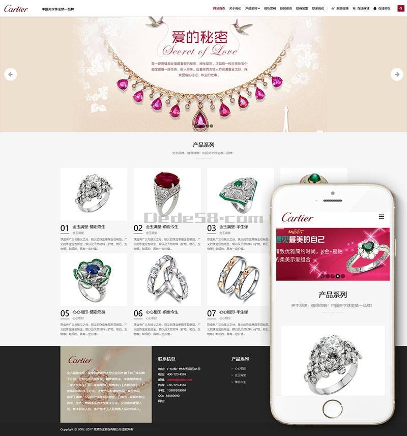 织梦最新内核开发的模板,该模板属于企业通用类、品牌珠宝、首饰、宝石、项链类企业都可使用,