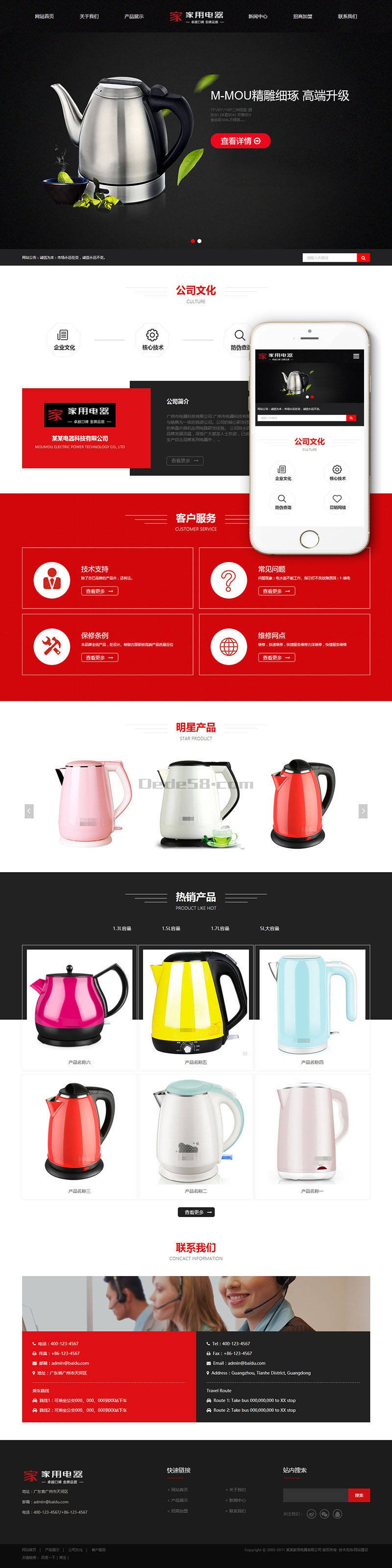 织梦最新内核开发的模板,该模板属于企业通用、HTML5响应式、小家电、家用电器、热水壶类企业使用,一款适用性很强的模板,基本可以适合各行业的企业网站!响应式自适应各种移动设备,同一个后台,数据即时同步,简单适用!