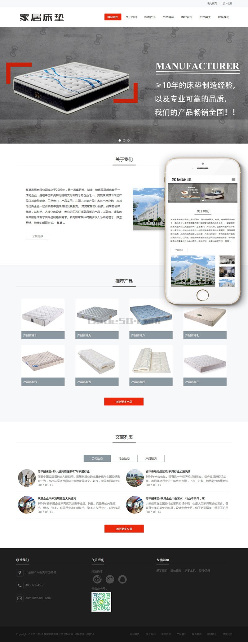 织梦最新内核开发的模板,该模板属于企业通用、HTML5响应式、家居床垫类企业使用,一款适用性很强的模板,基本可以适合各行业的企业网站!响应式自适应各种移动设备,同一个后台,数据即时同步,简单适用!