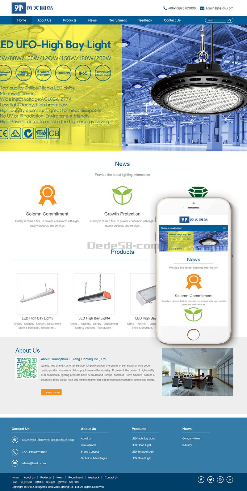 织梦最新内核开发的模板,该模板属于企业通用、HTML5响应式、外贸灯具产品,英文网站类企业使用,一款适用性很强的模板,基本可以适合各行业的企业网站!响应式自适应各种移动设备,同一个后台,数据即时同步,简单适用!