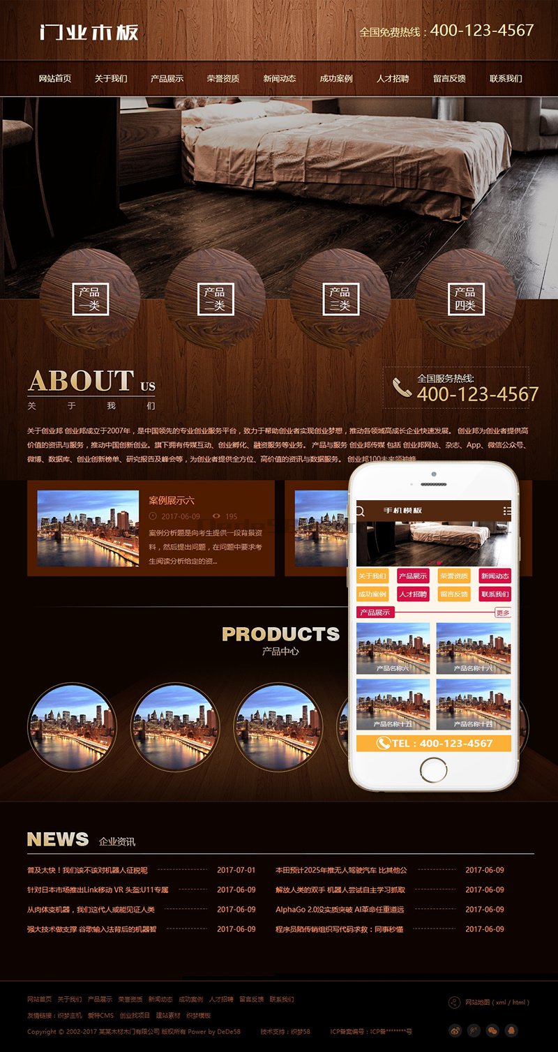 织梦最新内核开发的模板,该模板属于企业通用类、木材、门业、木门类企业都可使用,