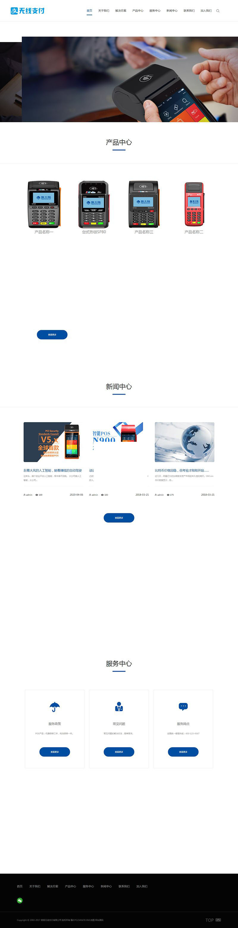 织梦最新内核开发的模板,该模板属于企业通用、HTML5响应式、无线支付、POS机、刷卡机类企业使用,一款适用性很强的模板,基本可以适合各行业的企业网站!
