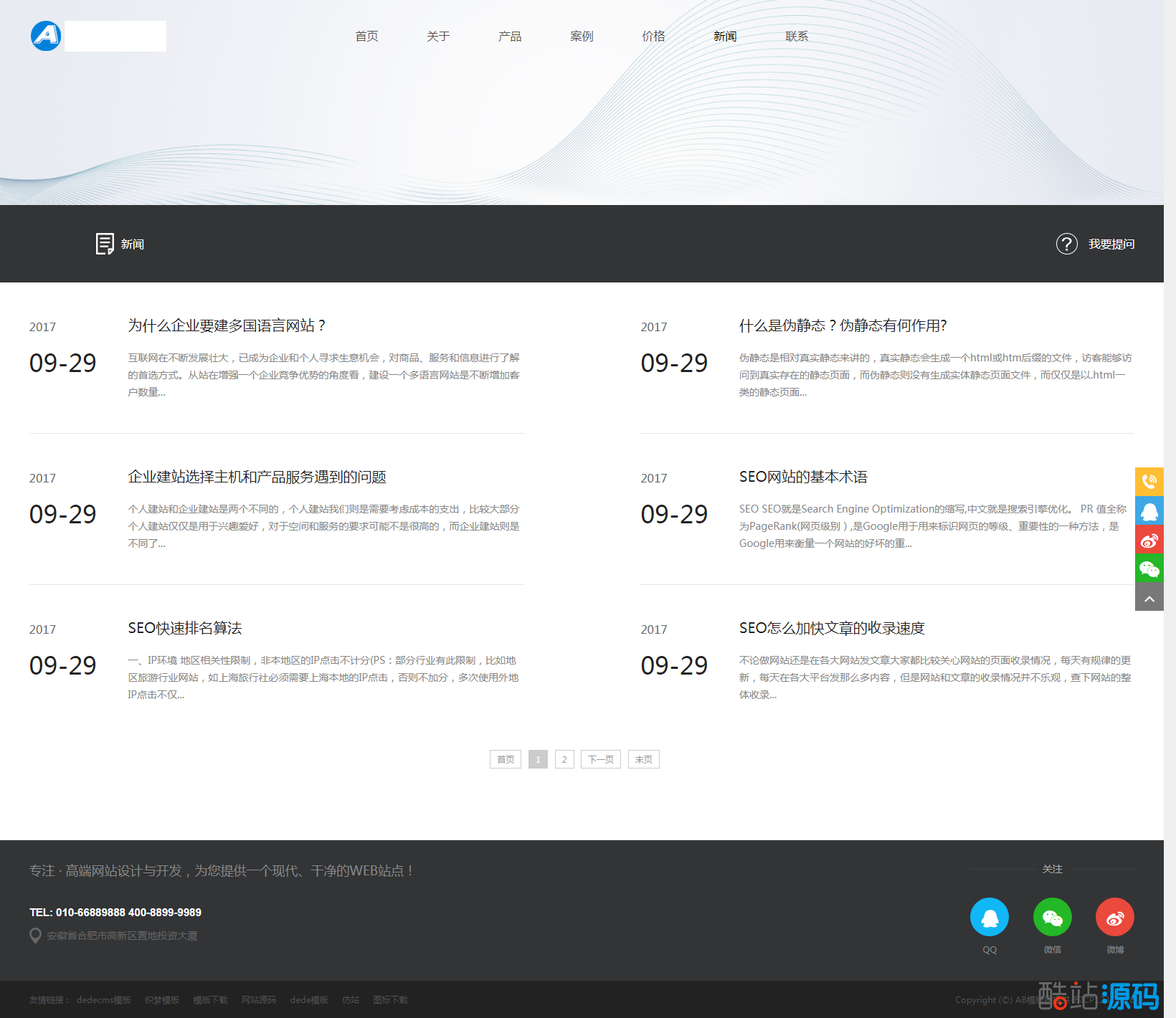4、网站手工DIV+css,代码精简,首页排版整洁大方、布局合理、利于SEO、图文并茂、静态HTML;
