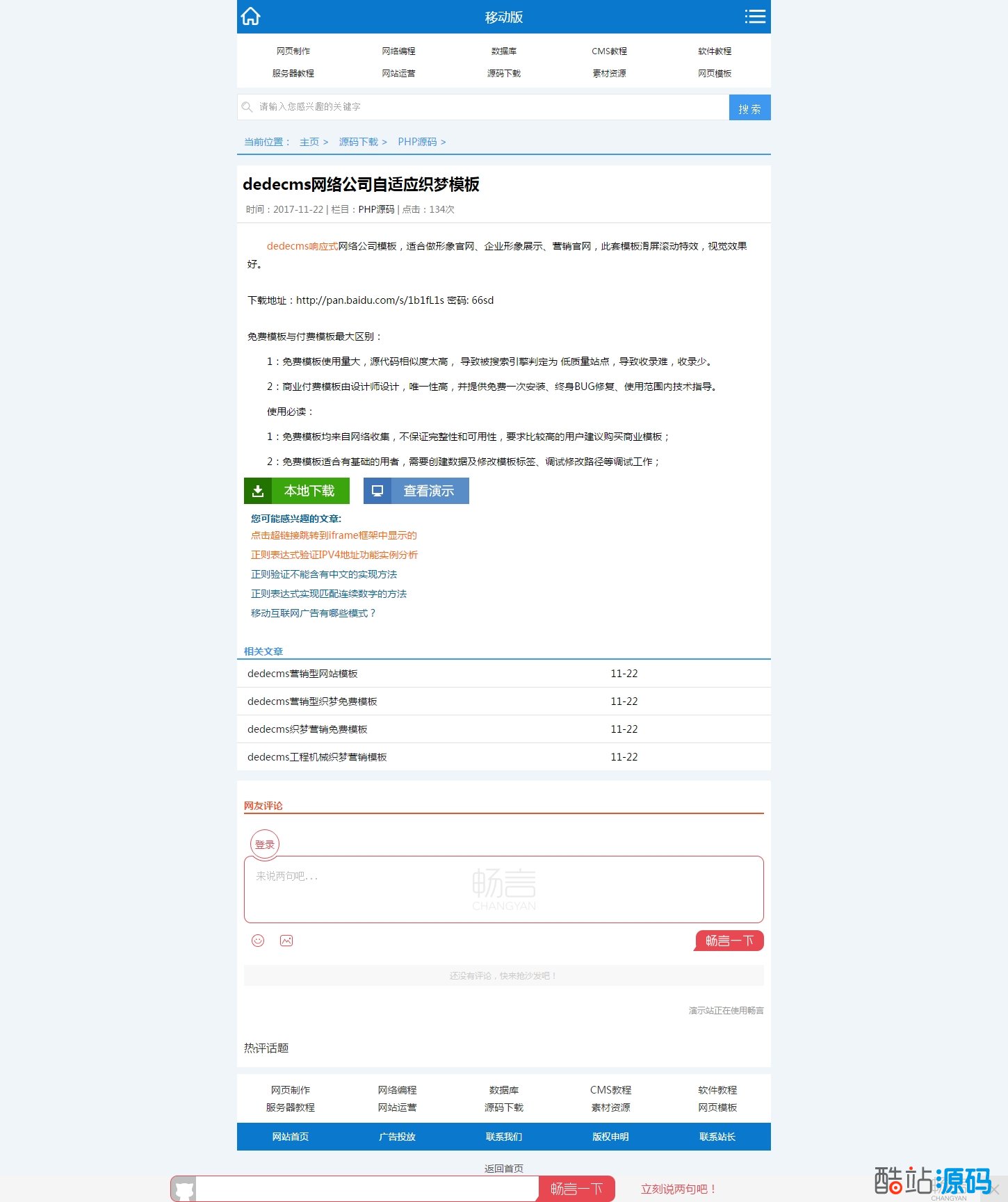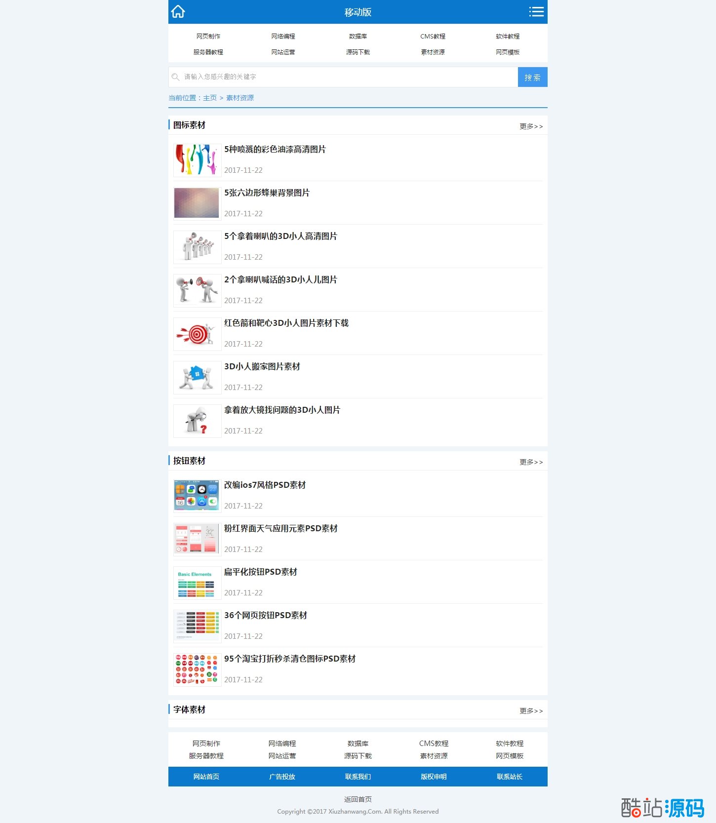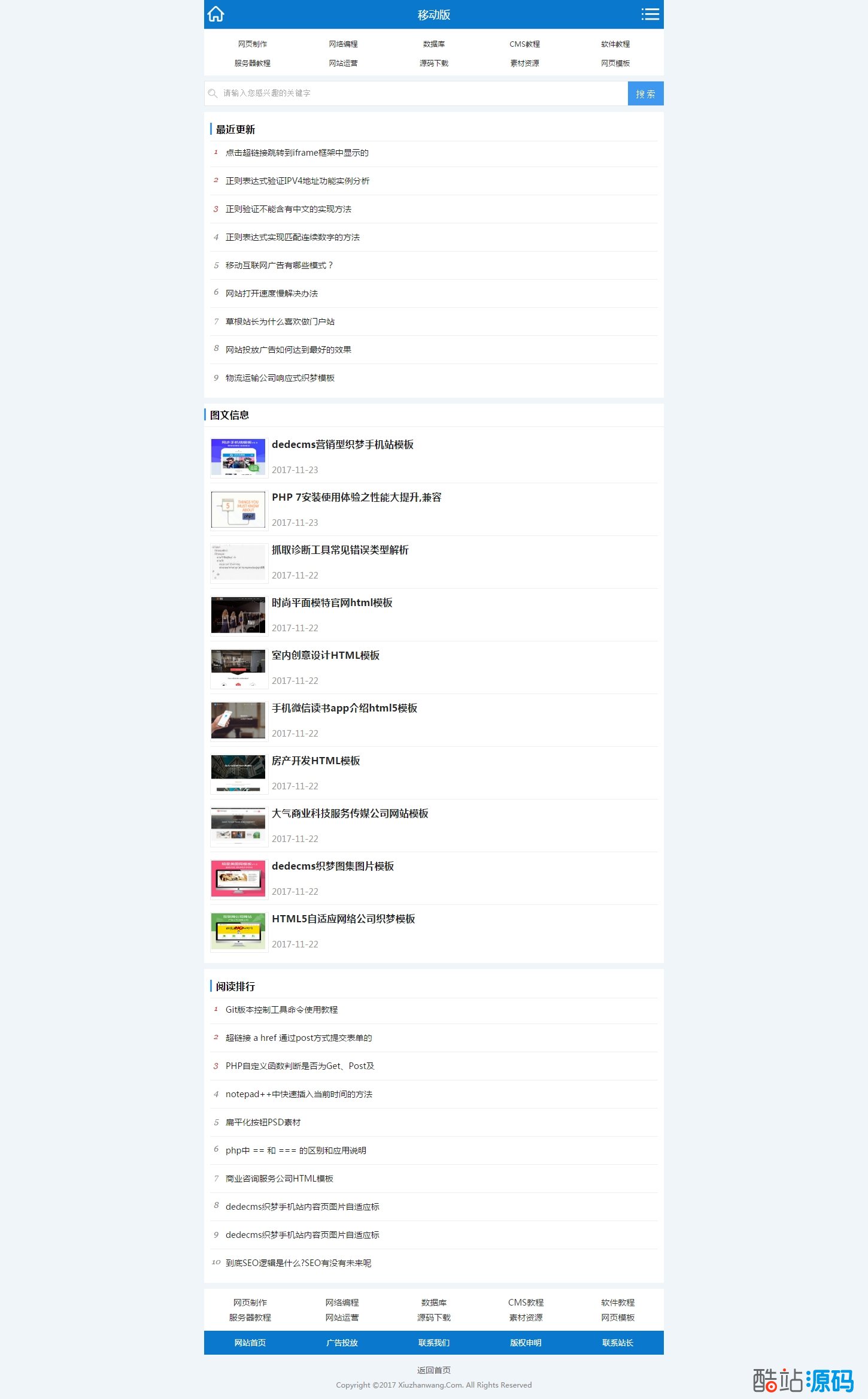 模板设计非常大气,适合做资讯类,教程类,资源下载类相关网站、模板自带手机端