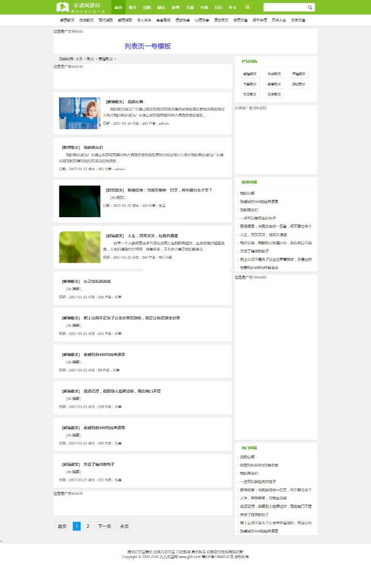 织梦精仿《99美文网》文学文章网站dedecms模板源码 自适应手机端