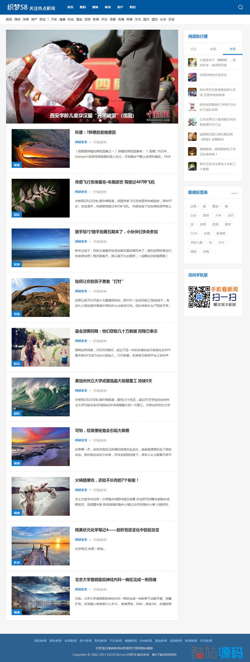 整站程序采用PHP+MYSQL架构,内核使用的是织梦Dedecms5.7