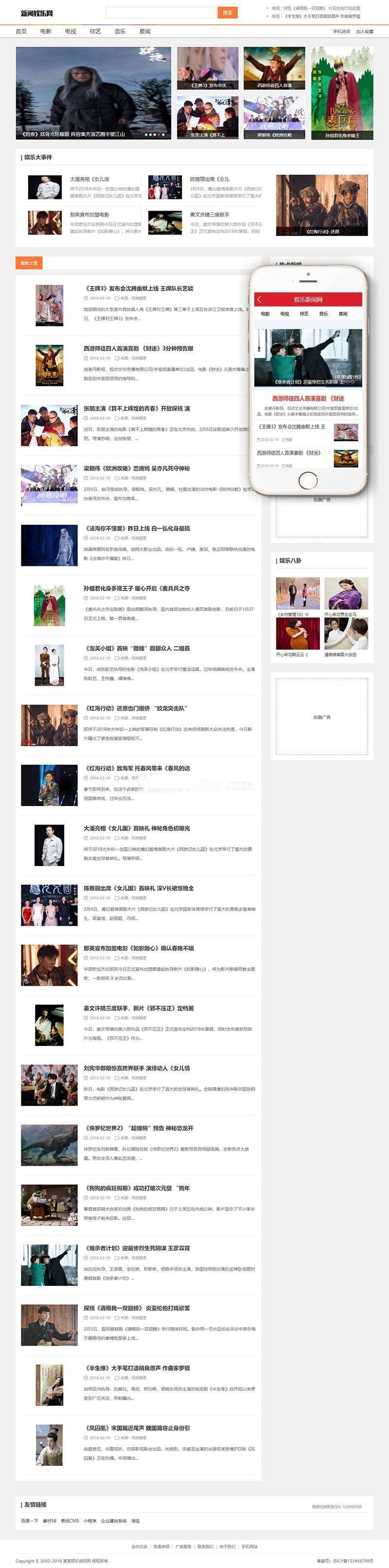 织梦dedecms娱乐门户新闻文章资讯网站模板源码 带手机移动端