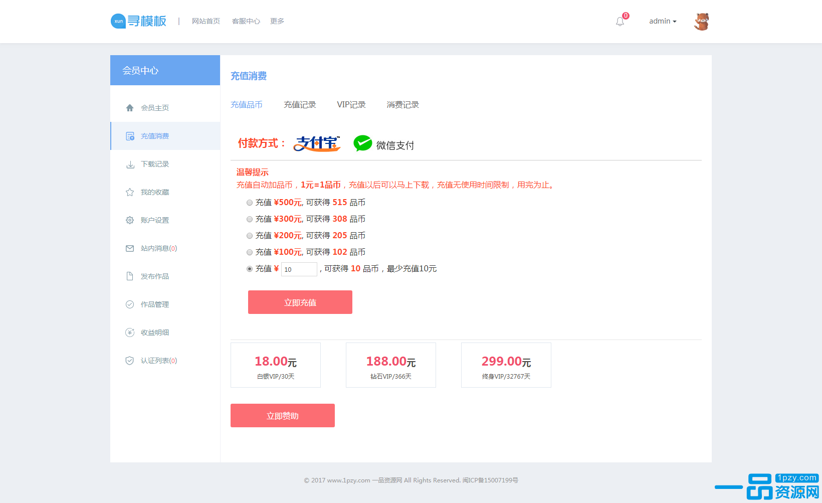 7.多原化下载模式(1.VIP免费下载功能,2.VIP原创打折功能,3.VIP下载次数限制功能)