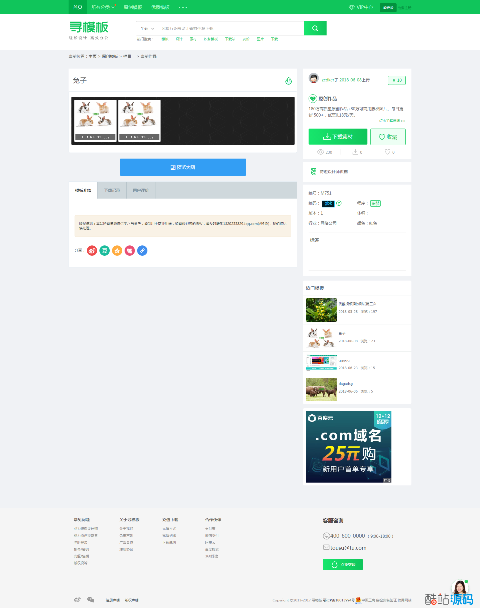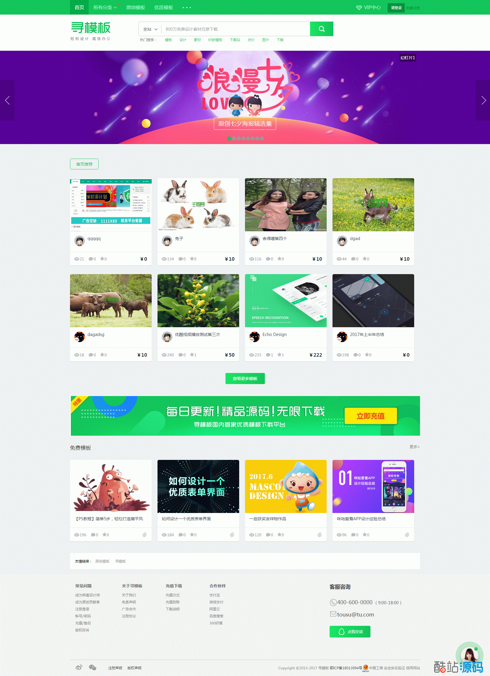 精仿千图网图片素材资源下载网站模板dedecms织梦源码。本套系统模板适合用于:图片、素材、资源下载、干货、UI教程、PPT资源素材下载站类使用。绿色大气的千图网素材类网站源码,可用于图片素材站,ppt素材站等。里面附带安装说明!