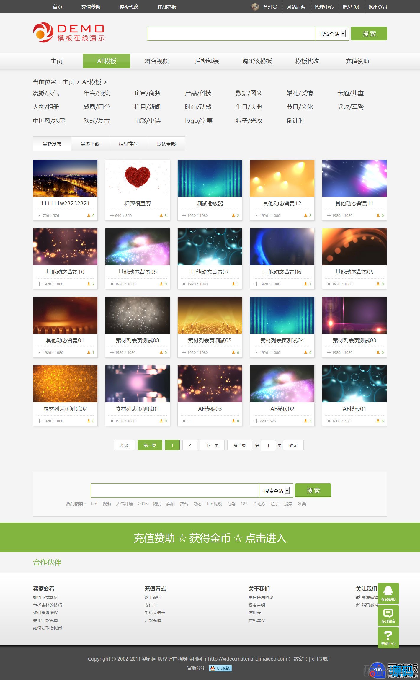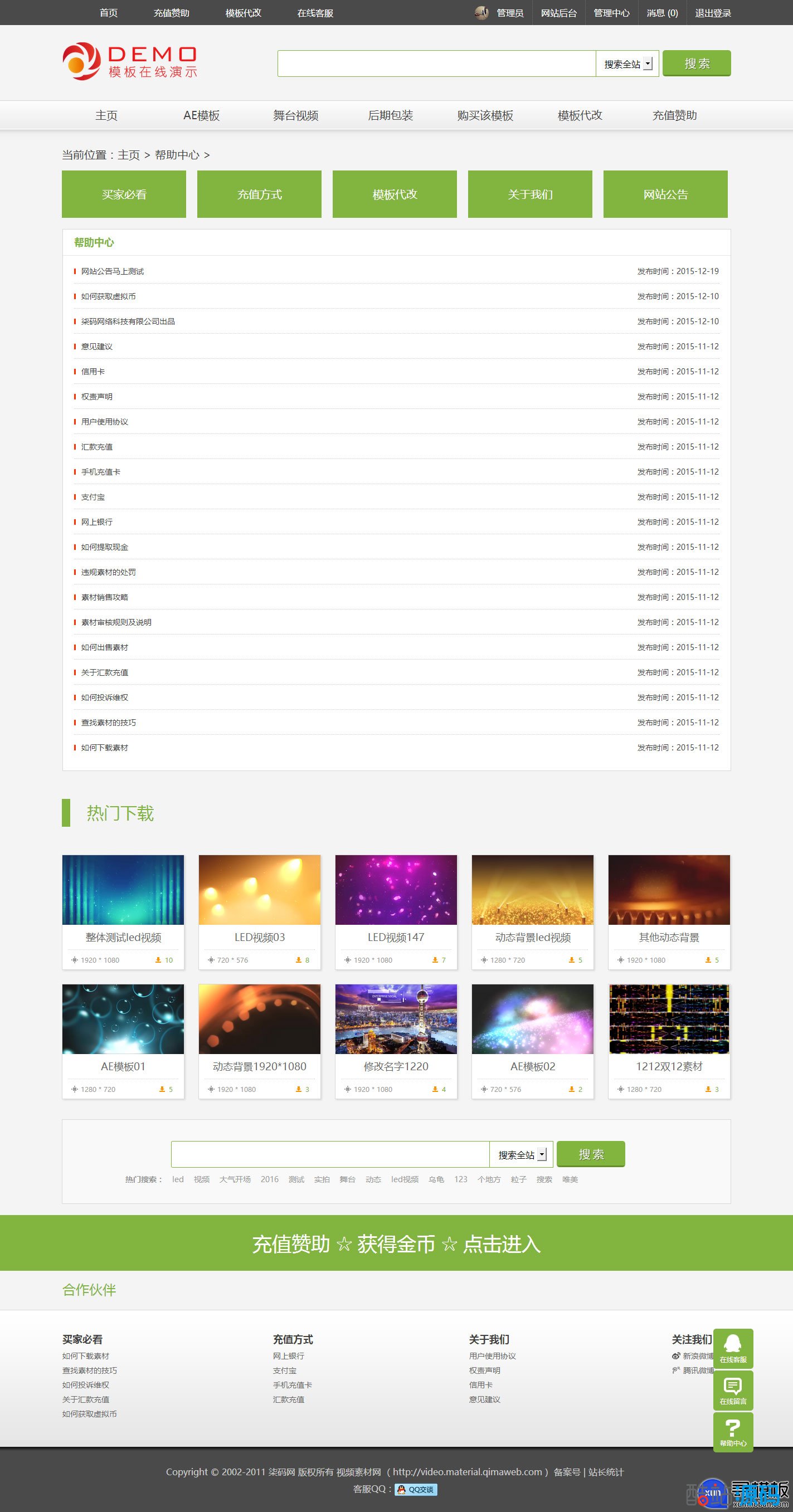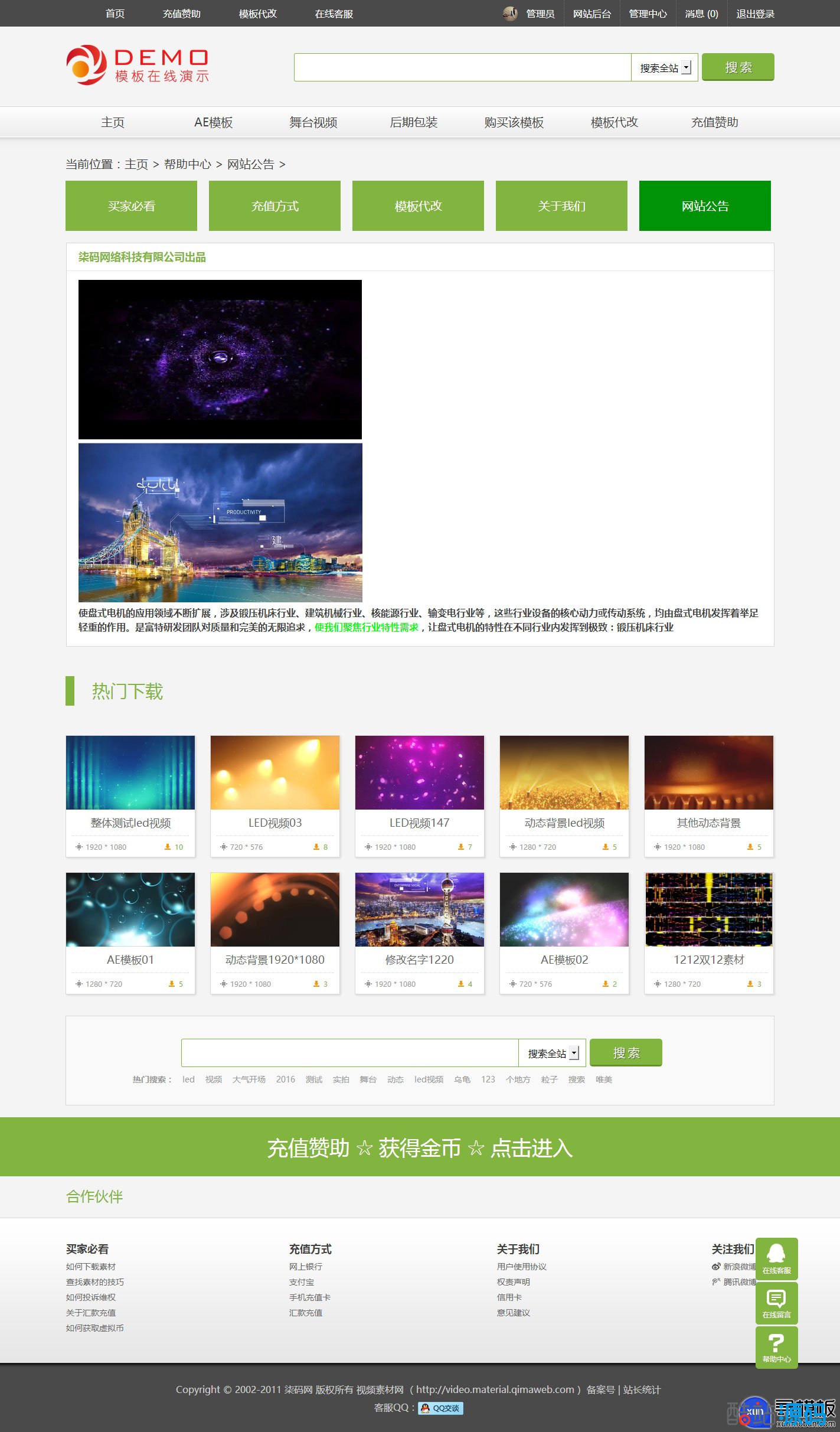 1,模板包括首页、素材列表页、素材详情页、素材下载地址页、文章列表页、文章内容页、文章封面页、用户中心(登录、注册、找回密码、用户中心首页、金币充值、上传素材、素材管理、收藏夹、资料修改、身份认证、申请提现等),代码书写规范,干净整洁。