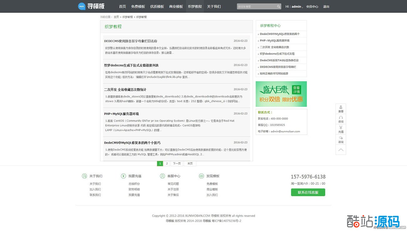 这套模板适合虚拟物品销售,网页模板销售,虚拟素材销售等行业使用,整站带数据,带安装说明。模板整体页面干净清晰,简洁。模板功能强大,图片采用加载的方式,大大提高了网站打开速度,注册时采用邮件验证激活账号,下载模板时通过邮件通知用户下载的模板信息。下载模板根据会员级别进行优惠,高级会员打折的方式。功能强大的不能再强大了。模板附带安装说明,包安装,包售后。此款织梦模板采用UFT-8内核制作,该模板是整站源码,带测试数据,安装非常方便,。