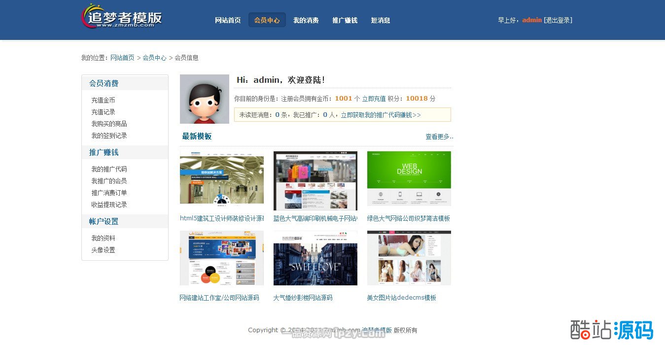 2,完整的会员功能,全新的会员中心,包含在线充值等功能。无冗余内容,避免会员无所适从。