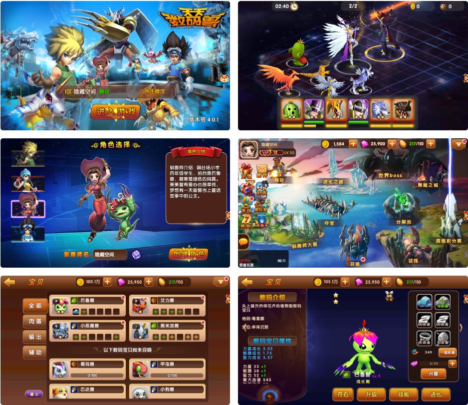 超人气动画,数码宝贝100%复刻,亿万粉丝童年回忆,被选中的孩子们,准备好进入《大数码宝贝》的世界吧!倾情奉献,百款3D精模萌宠,亚古兽、加布兽、天女兽、天使兽再次齐聚,等你召唤!多线程进化、世界BOSS、天使许愿、各种独创玩法乐不停。